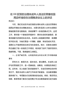 在XX区预防治理未成年人违法犯罪暨校园周边环境综合治理推进会议上的讲话.docx