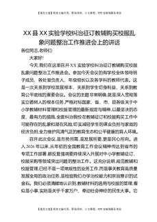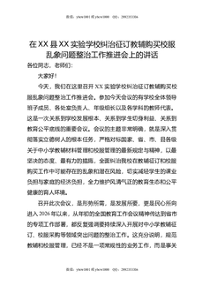 在XX县XX实验学校纠治征订教辅购买校服乱象问题整治工作推进会上的讲话.docx
