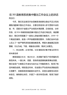 在XX县教育系统集中整治工作会议上的讲话.docx