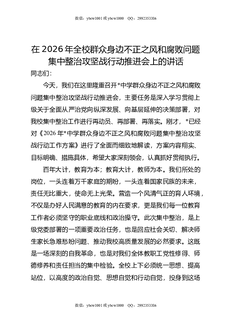 在2026年全校群众身边不正之风和腐败问题集中整治攻坚战行动推进会上的讲话.doc