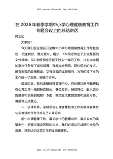 在2026年春季学期中小学心理健康教育工作专题会议上的总结讲话.docx