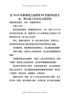 在2026年春季高三迎高考88天誓师动员大会,高三成人礼仪式上的讲话.docx