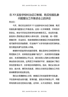 在XX实验学校纠治征订教辅,购买校服乱象问题整治工作推进会上的讲话.doc