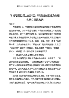 学校专题党课上的讲话:师道如光纪法为轨循光而立履轨致远.docx