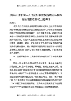 预防治理未成年人违法犯罪暨校园周边环境综合治理推进会议上的讲话.docx