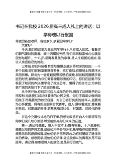书记在我校2026届高三成人礼上的讲话:以学铸魂以行报国.docx