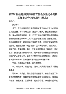在XX县教育局学前教育工作会议暨幼小衔接工作推进会上的讲话(精品).doc
