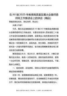 在XX镇2025年教育高质量发展大会暨师德师风工作推进会上的讲话(精品).doc