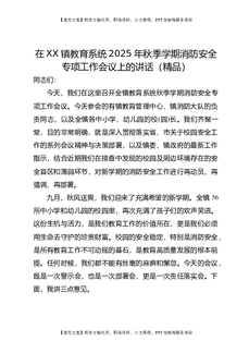 在XX镇教育系统2025年秋季学期消防安全专项工作会议上的讲话(精品).doc
