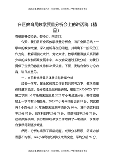在区教育局教学质量分析会上的讲话稿(精品).doc
