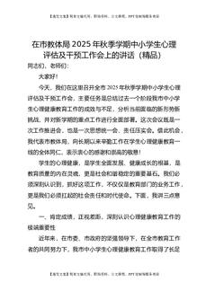 在市教体局2025年秋季学期中小学生心理评估及干预工作会上的讲话(精品).doc