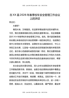 在XX县2026年春季校车安全管理工作会议上的讲话.doc