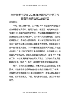 学校党委书记在2026年全面从严治党工作暨警示教育会议上的讲话.doc