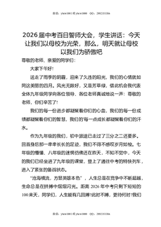2026届中考百日誓师大会,学生讲话:今天让我们以母校为光荣,那么,明天就让母校以我们为骄傲吧.docx