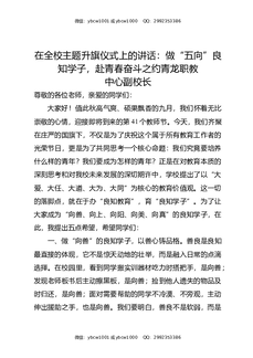 学校教师发展中心主任在升旗仪式上的讲话:青春逐梦正当时,砥砺前行谱华章.docx