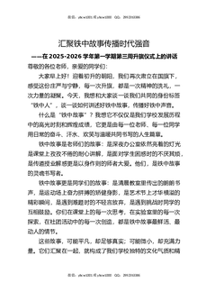 在2025-2026学年第一学期第三周升旗仪式上的讲话:汇聚铁中故事传播时代强音.docx