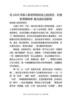 在2025年新入职老师培训会上的讲话:扎根新荷育桃李逐光成长启新程.docx