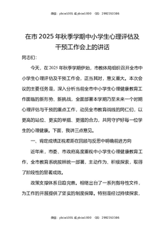 在市2025年秋季学期中小学生心理评估及干预工作会上的讲话.docx