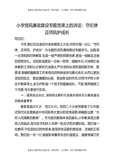 小学党风廉政建设专题党课上的讲话:守纪律正师风护成长.docx