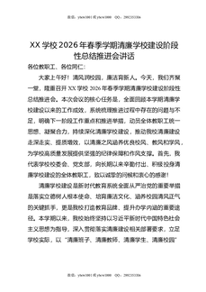 XX学校2026年春季学期清廉学校建设阶段性总结推进会讲话.docx