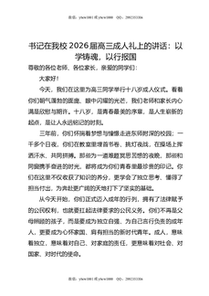 书记在我校2026届高三成人礼上的讲话:以学铸魂,以行报国.docx