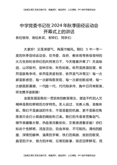 中学党委书记在2024年秋季田径运动会开幕式上的讲话.docx