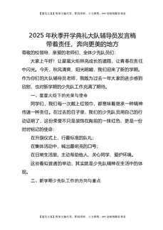 2025年秋季第一学期开学典礼大队辅导员发言稿:带着责任,奔向更美的地方.docx