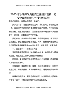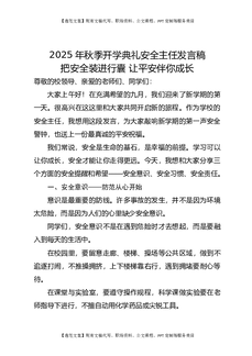 2025年秋季第一学期开学典礼安全主任发言稿:把安全装进行囊,让平安伴你成长.docx