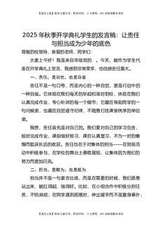 2025年秋季第一学期开学典礼学生的发言稿:让责任与担当成为少年的底色.docx