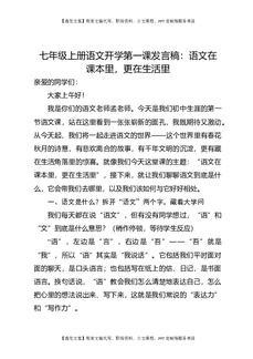 语文在课本里,更在生活里——七年级上册语文开学第一课发言稿.docx