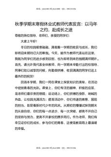秋季学期末寒假休业式教师代表发言:以马年之约,赴成长之途.doc
