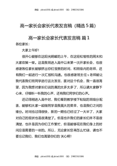 高一家长会家长代表发言稿(精选5篇).docx