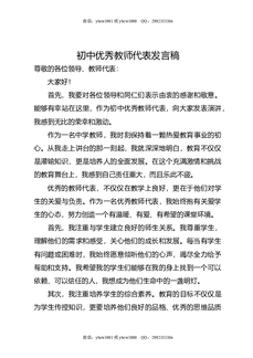 初中优秀教师代表发言稿.docx