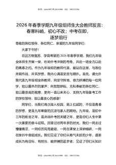 2026年春季学期九年级组师生大会教师发言:春寒料峭,初心不改;中考在即,逐梦前行.doc