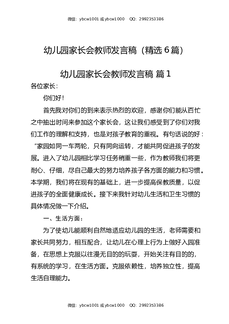 幼儿园家长会教师发言稿(精选6篇).docx