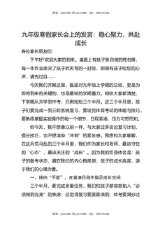 九年级寒假家长会上发言:稳心聚力,共赴成长.doc