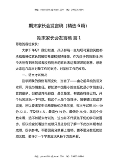期末家长会发言稿(精选6篇).docx