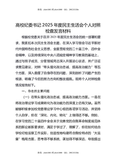 高校纪委书记2025年度民主生活会个人对照检查发言材料.docx
