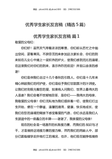 优秀学生家长发言稿(精选5篇).docx