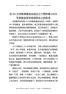 在XX大学教育基金会成立三十周年暨2025年奖教金奖学金颁奖会上的发言.docx