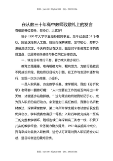 在从教三十年高中教师致敬礼上的发言.doc