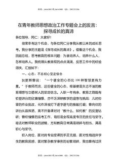 在青年教师思想政治工作专题会上的发言:探寻成长的真谛.doc