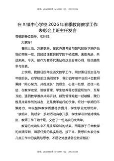 在X镇中心学校2026年春季教育教学工作表彰会上班主任发言.doc