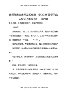 教师代表在市开发区高级中学2026届学子成人仪式上的发言:一样的爱.docx