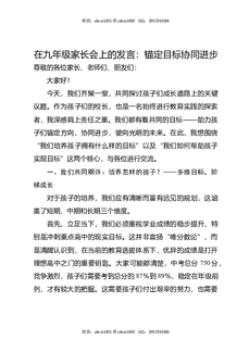 在九年级家长会上的发言:锚定目标,协同进步.docx