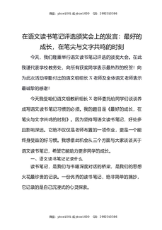 在语文读书笔记评选颁奖会上的发言:最好的成长,在笔尖与文字共鸣的时刻.docx