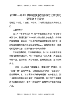 在XX一中XXX周年校庆系列活动之北京校友见面会上的发言.doc