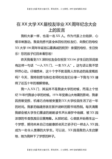 在XX大学XX届校友毕业XX周年纪念大会上的发言.doc