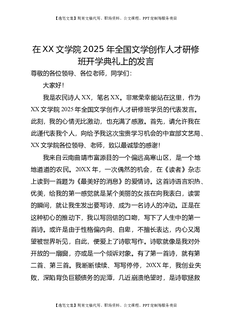 在XX文学院2025年全国文学创作人才研修班开学典礼上的发言.doc