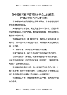 在中国教师报评论写作分享会上的发言:教育评论写作的3把钥匙.doc